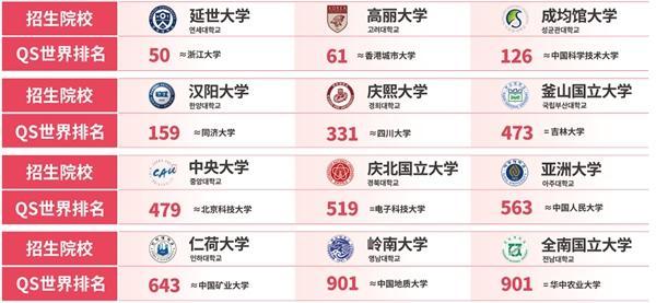 韩国大学入学申请相较于其他国家来说是比较宽松的,无需高考成绩、也无需入学考试,只需要语言达到要求,即可轻松申请等同于国内“985”“211”的名校。同时,申请学生签证手续便捷,办理周期短,签证获取率高,成功留学更加容易。