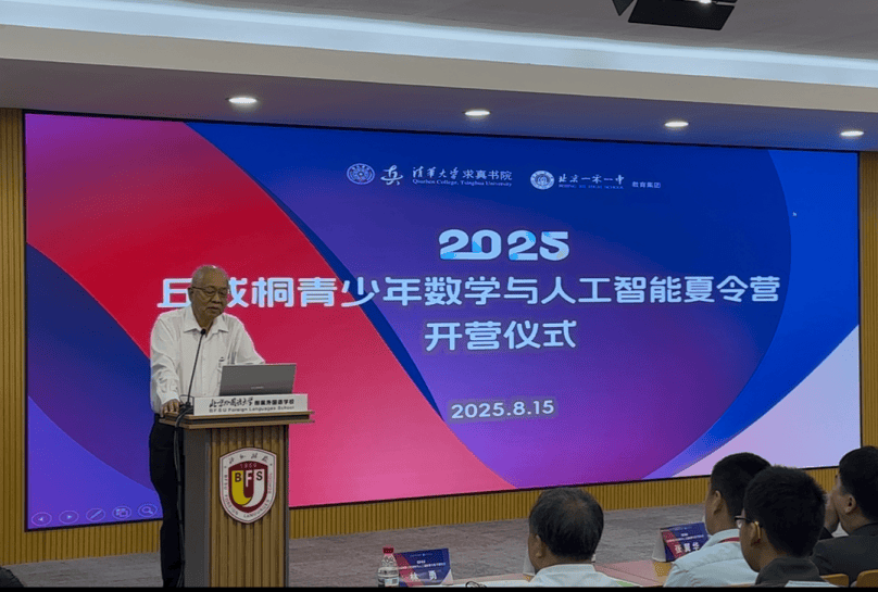 8月15日上午9点,夏令营活动正式开营。开营仪式上,丘成桐先生亲临现场,以自身经历说明基础研究的价值,强调“做学问重在夯实基础”,鼓励同学们打牢基础,并深入浅出地阐释人工智能与数学的深刻联系。海淀区教委及一零一中领导也分别致辞,强调课程体系优势、培养模式探索及对创新人才培养的期待。随后,夏令营学术负责人周源老师系统介绍了“上午学理论、下午练实践、最终以小组形式完成实战项目”的课程体系,为同学们勾勒出一幅充实而富有挑战的学习图景。