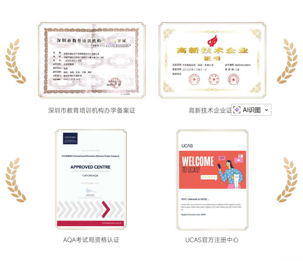 其次,公司主体“牛剑教育科技(深圳)有限公司”于2020年被认定为“国家高新技术企业”(证书编号:GR2),这表明其在教育科技研发、知识产权创造方面达到了国家级标准,绝非传统的“小作坊”式培训机构。此外,它还是英国大学招生服务中心UCAS的官方注册中心,进一步证明了其在英系留学领域的专业地位与官方认可度。